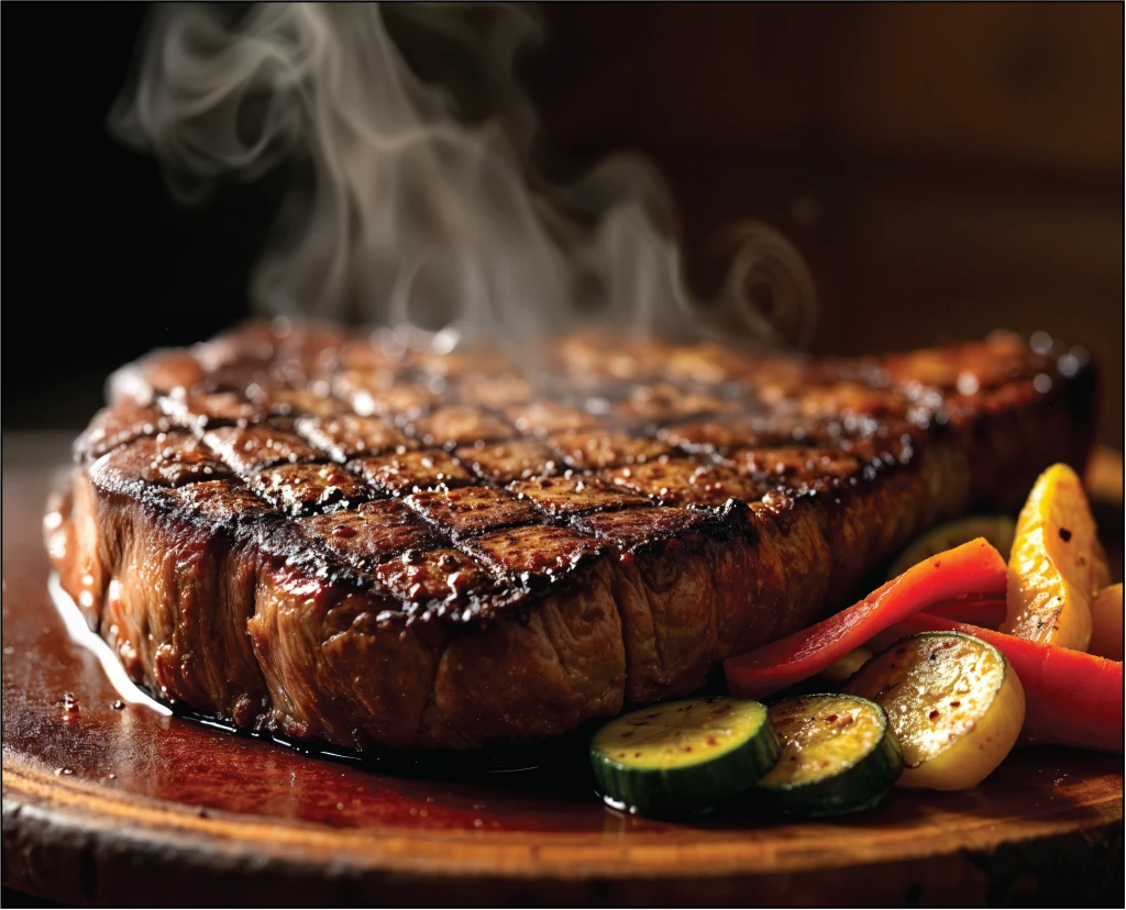 Kött di manzo, tomat, timiya, orion, pepe nero, smör, olja di oliva extra vargín, potatis, grädde och gurka.