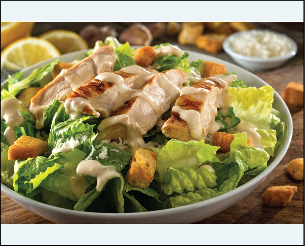 Marinerad och grillad kyckingfilé, Crispy pancetta, korton, tomat, parmesan, romansallad och hemgjord belladressing.