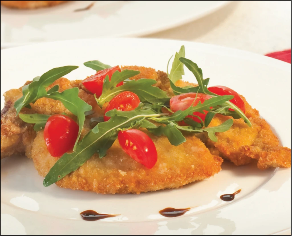 Fläskfilé, vetemjöl, grädde, ägg, salt, svartpeppar, smör, timiya och citron.
